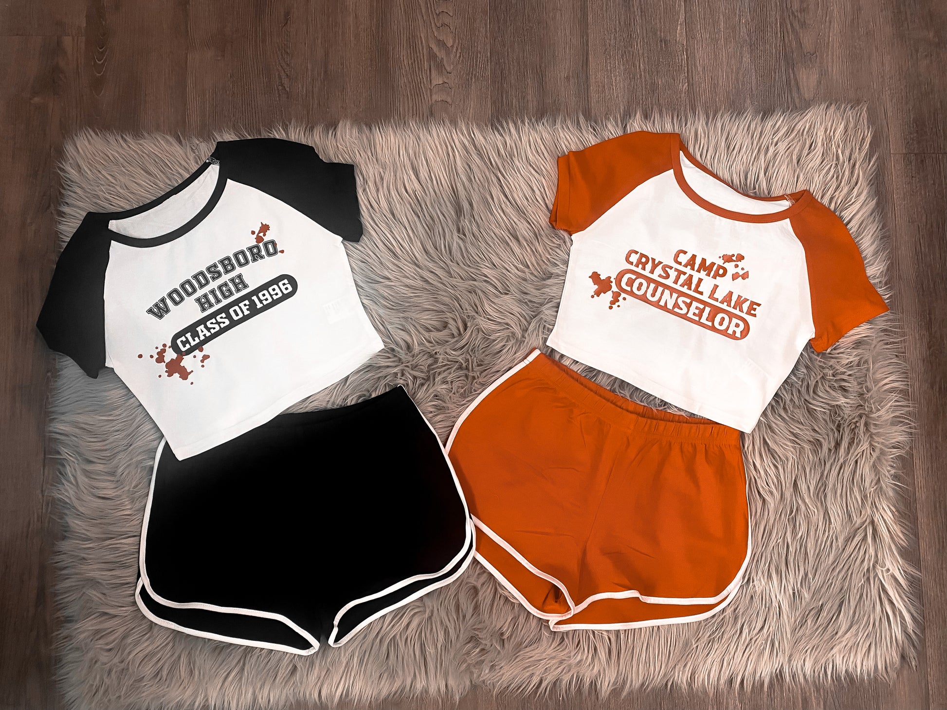Stumped on your Halloween Costume this year?! Throw on one of these sets, with some fishnets, baseball socks, boots and a mask and you’re ready for the party.. don’t forget your weapon.. fake of course. 🔪🖤 Jason and Scream camp sets