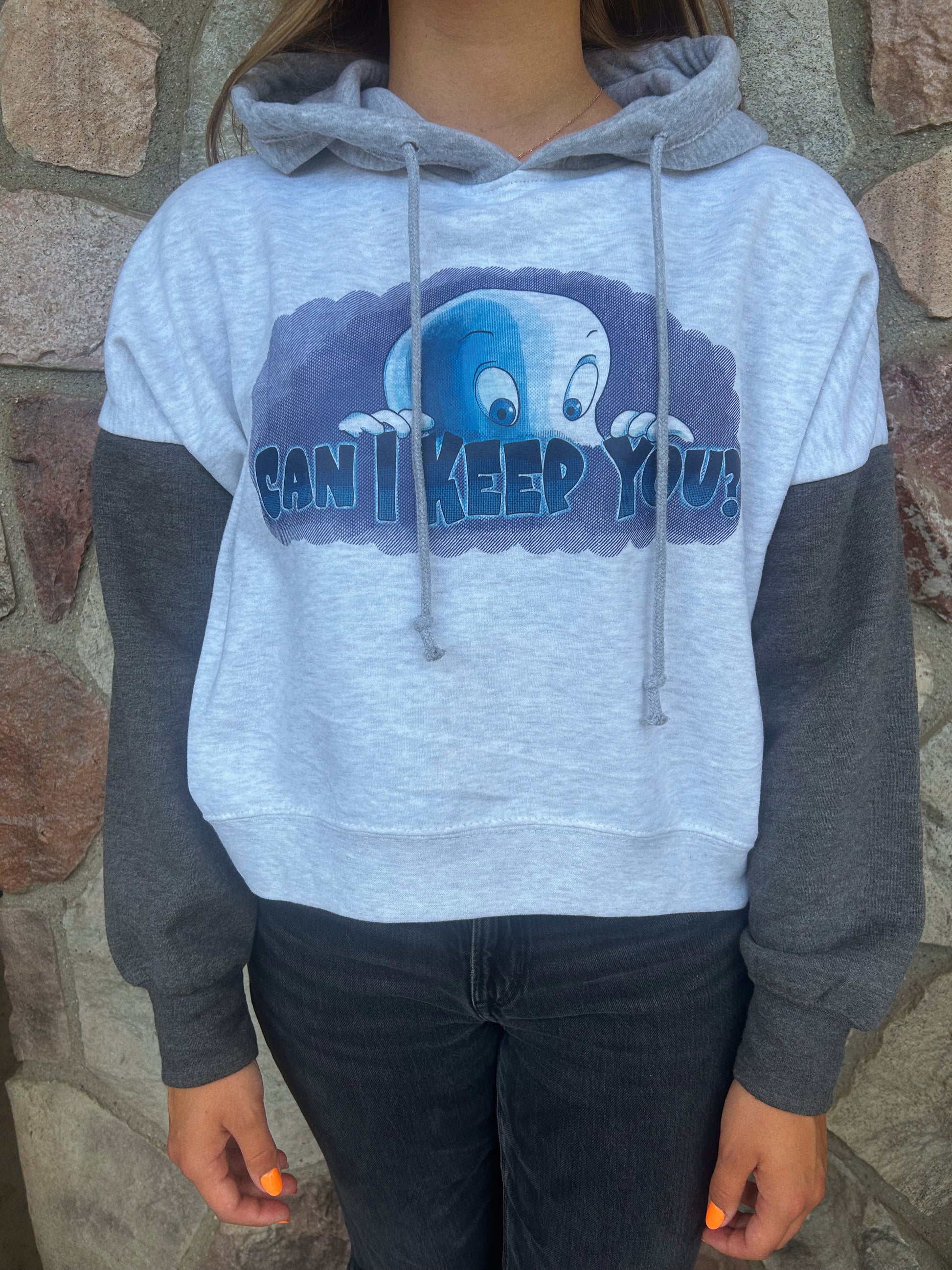 Can I keep you CASPER colorblock crop hoodie! Very soft! Women’s sized. Hand printed by us in Michigan.