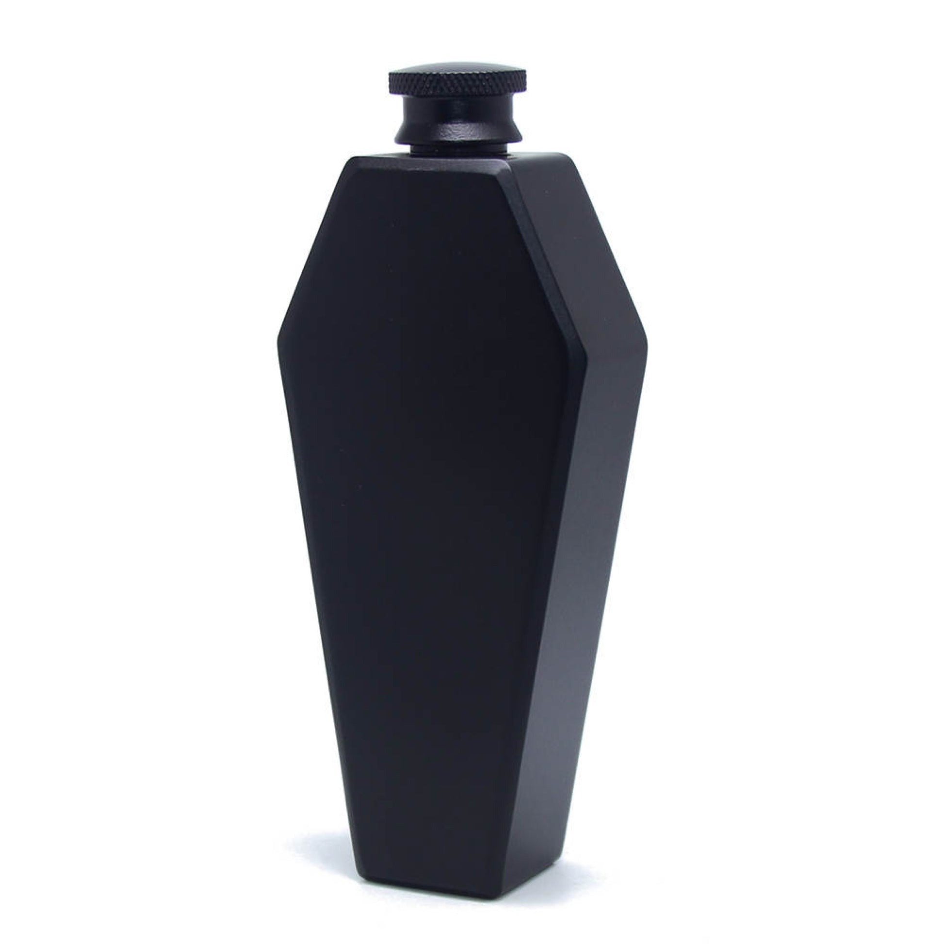 Stainless steel coffin flask. Holds 3.5 ounces of liquid and is polished to perfection.