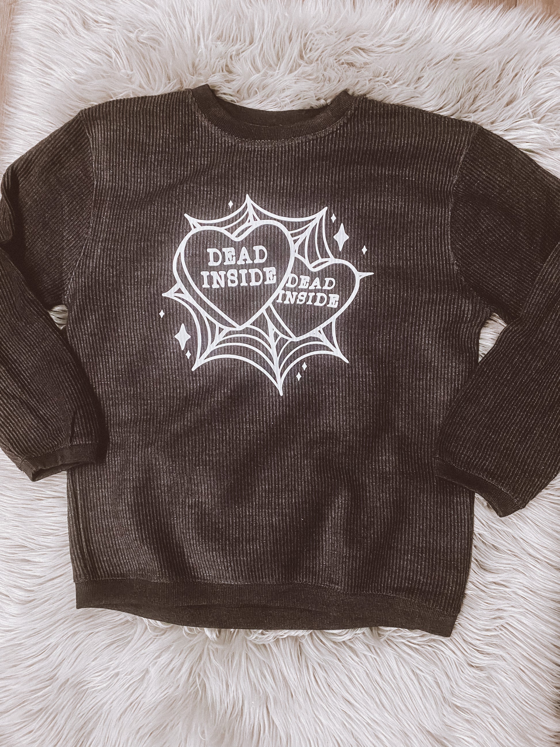 The Dead Inside Ribbed Sweater is a ribbed pullover and charcoal colored!