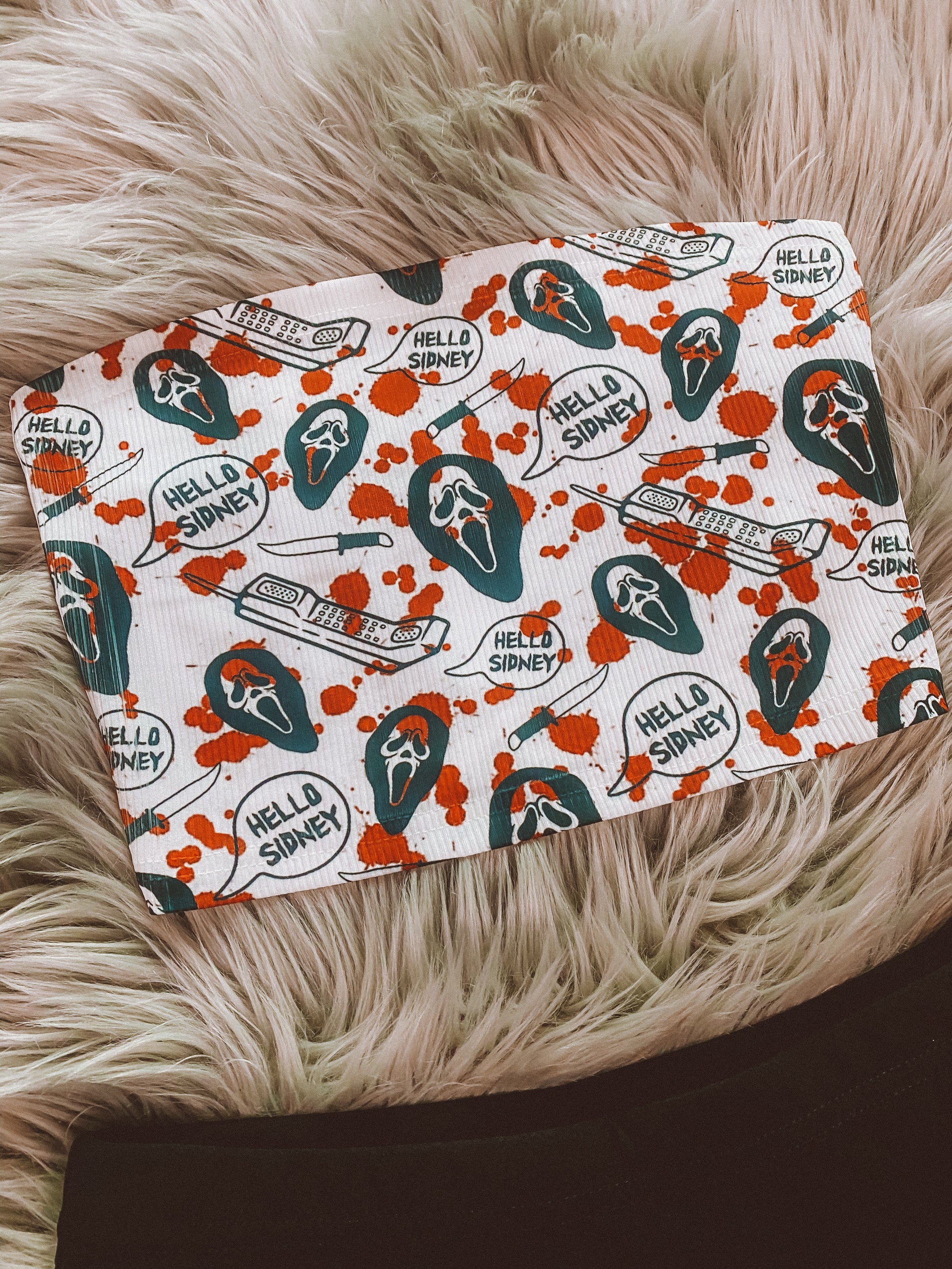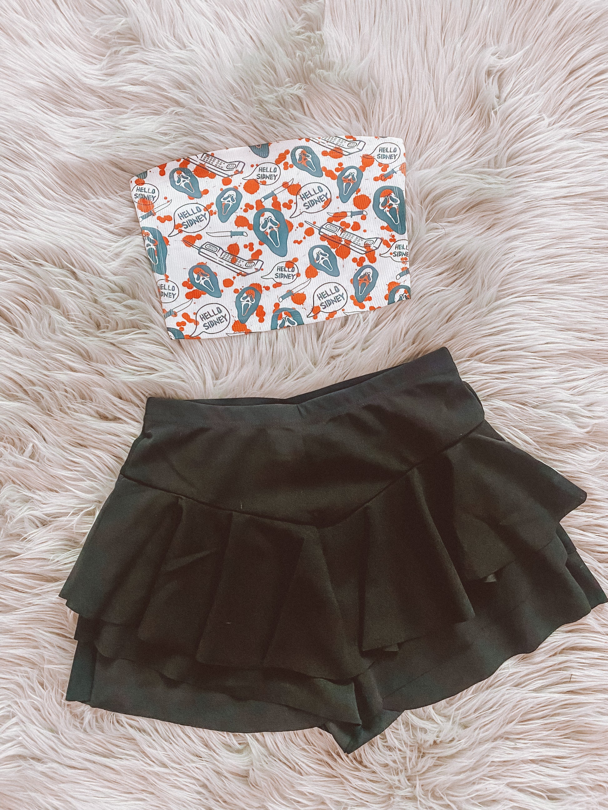 Our Ghostface tube top is perfect for summertime wear! This is not padded and is ribbed material (printed by us in our warehouse) Pairs great with our Salem Skirt )sold separately)!