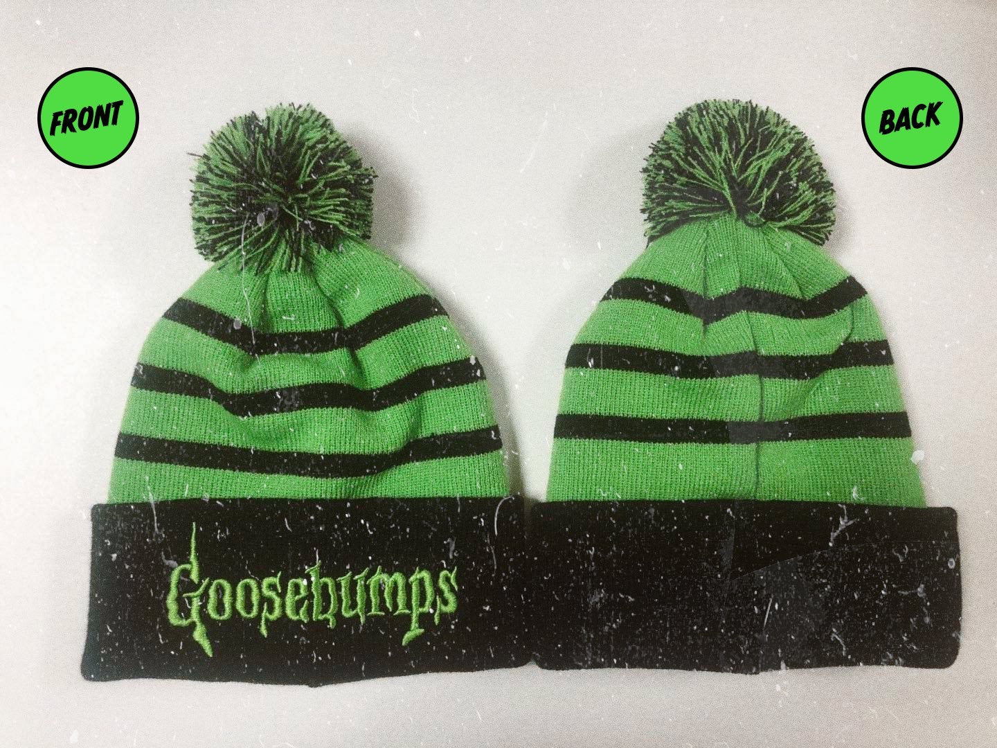 Goosebumps embroidered pom beanies are a unisex beanie! Perfect for Fall / Winter months ahead. This beanie is made of acrylic knit.