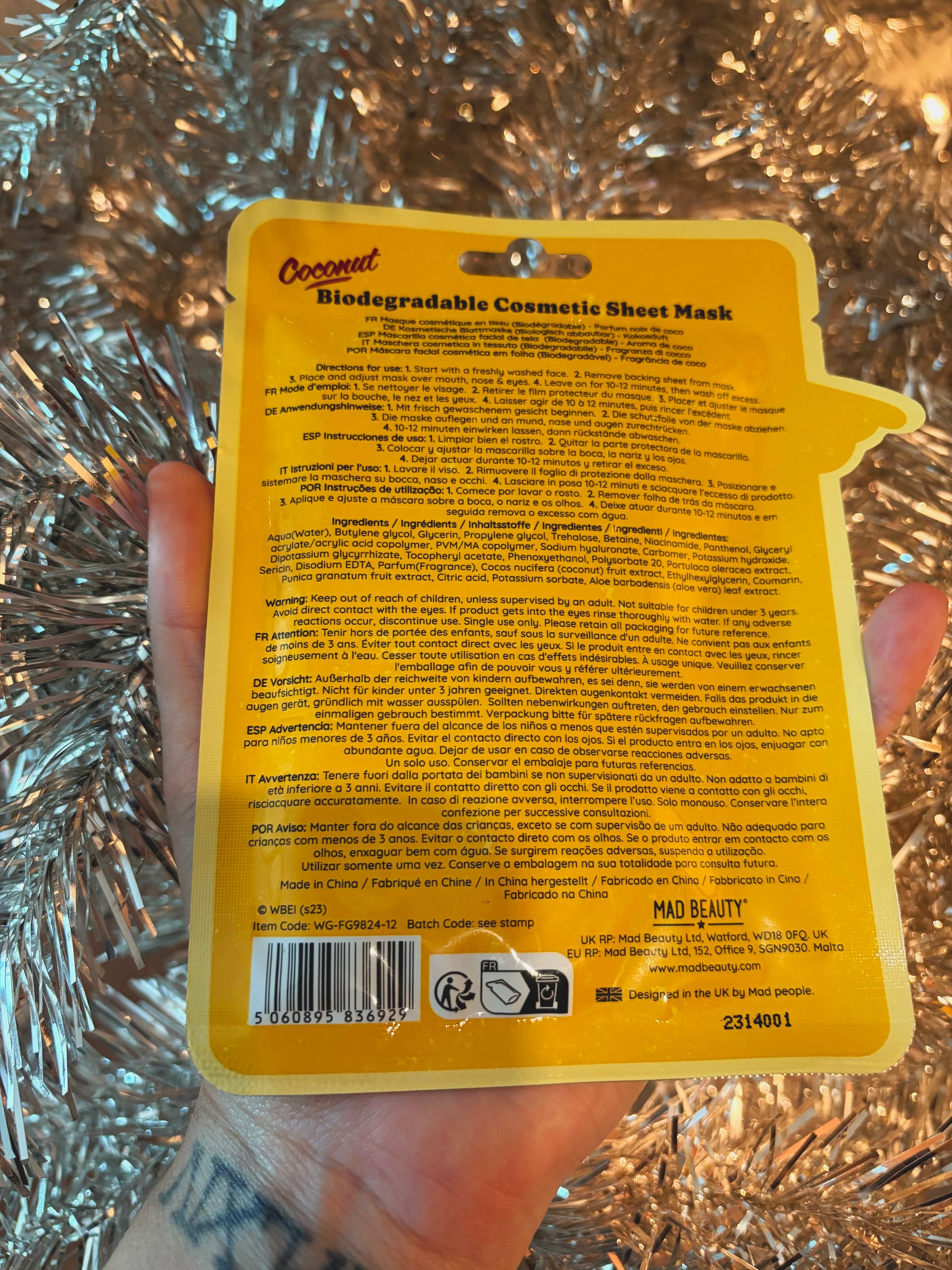made from biodegradable material and infused with hydrating hyaluronic acid and refreshing coconut to leave skin feeling rejuvenated and moisturized