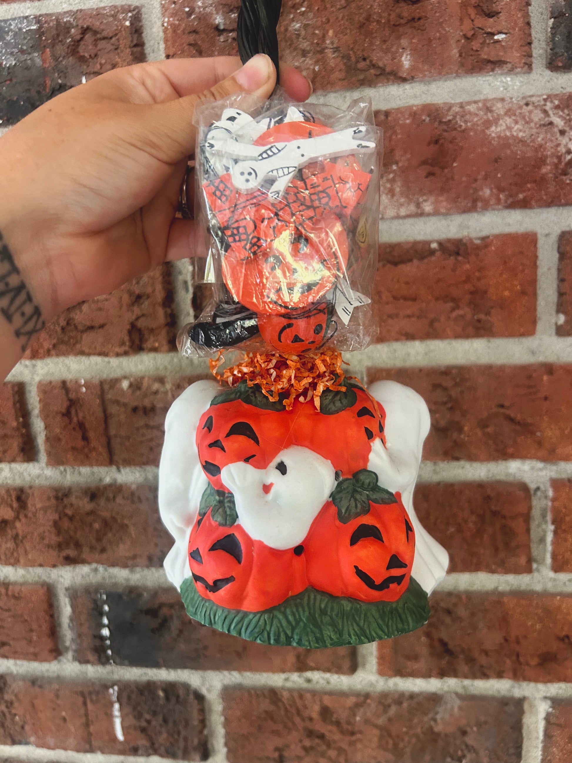 base is double sided with pumpkins and ghosts - really neat piece