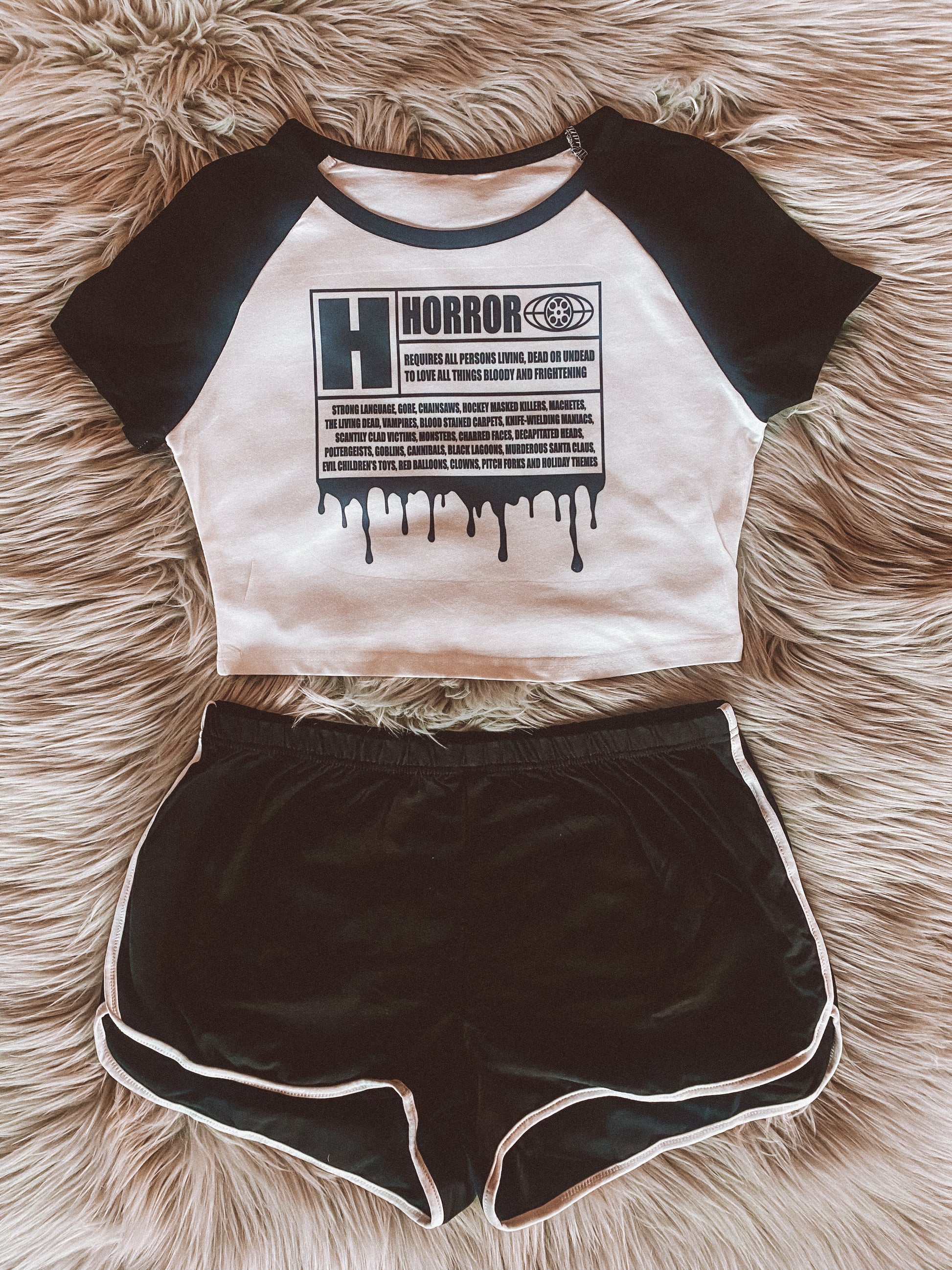 Stumped on your Halloween Costume this year?! Throw on one of these sets, with some fishnets, baseball socks, boots and a mask and you’re ready for the party.. don’t forget your weapon.. fake of course. 🔪🖤