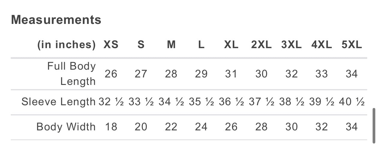 Size chart is shown in inches - last photo on this listing